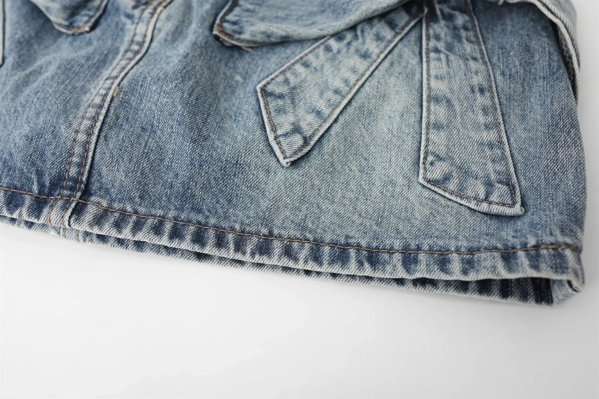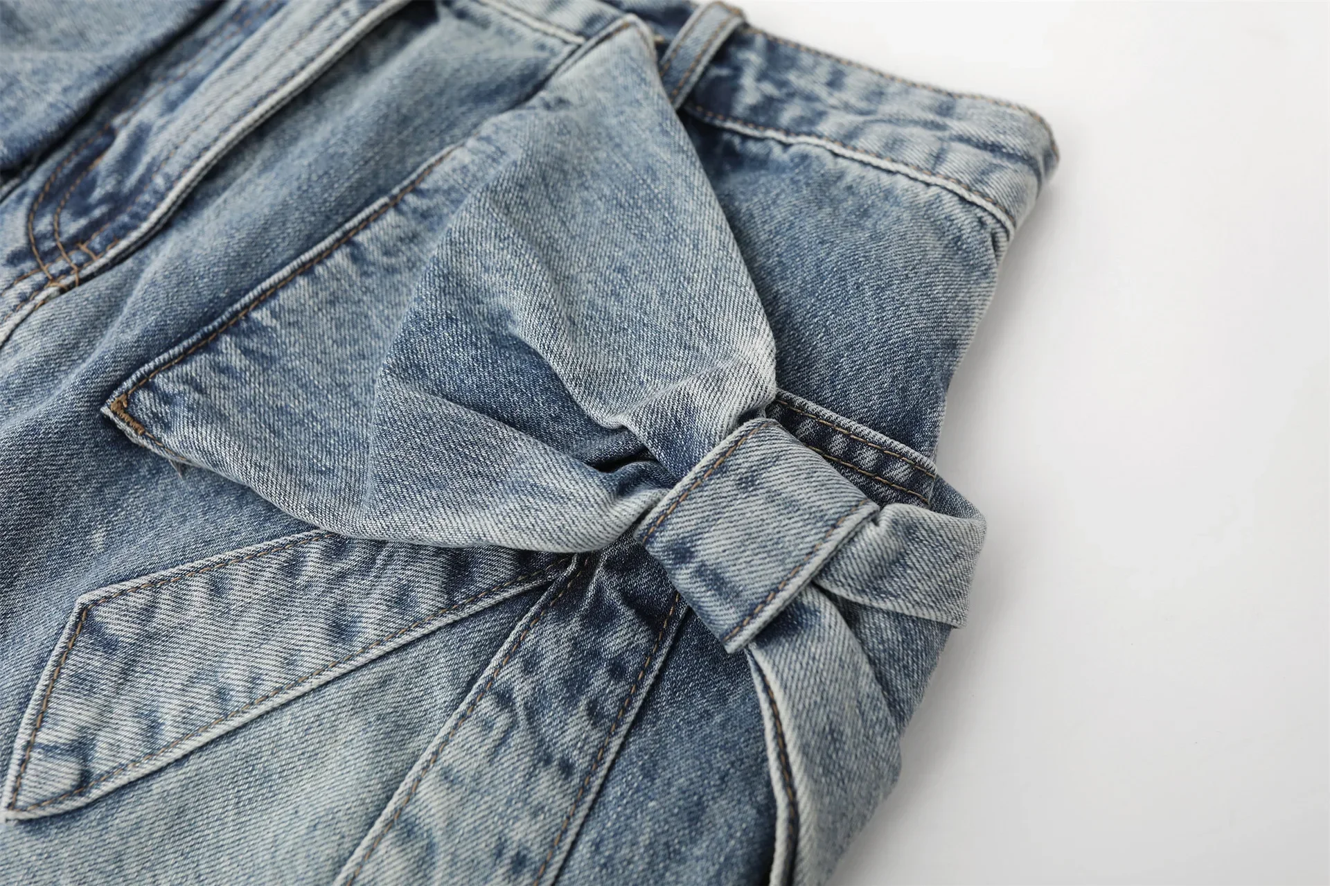Elegant Women's High Waist Denim Short Skirt Kawaii Bows Sexy Party Mini Jean Skirts Slim Streetwear Y2K Skirt Summer Streetwear